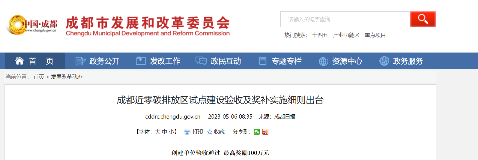 最高獎勵100萬!成都近零碳排放區試點獎補細則出臺