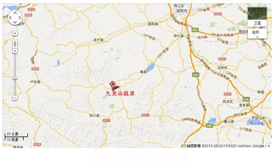 河南省欒川九龍山溫泉旅游度假區,位于洛陽市欒川縣潭頭鎮九龍山中,緊鄰北國水鄉重渡溝,距雞冠洞、龍峪灣、老君山、白云山、陸渾水庫等景區均約60公里,是進入欒川東大門的第一景區。 |
