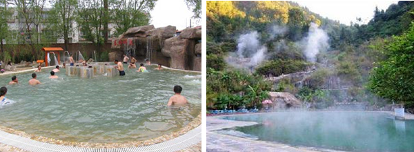 熱水溫泉地處老圖山脈東緣山麓,分布面積為0.42平公里,日最大可采儲(chǔ)量1800~2100噸,中心孔深503米,自流水溫高達(dá)當(dāng)?shù)胤悬c(diǎn)97℃,是全國(guó)水溫最高的溫泉之一。泉水中含有碳酸氯鈉、硫化氫、二氧化硅、氡、氟、碘、硼、銅、銀、鉀、鈦、鈄、鎂、鋰、鈣等卜幾種化學(xué)物質(zhì)及微量元素,對(duì)神經(jīng)衰弱、高血壓、糖尿病、皮膚病、胃病、布氏桿菌癇、多發(fā)性神經(jīng)炎、增生性脊柱炎、氣管炎等30多種常見(jiàn)疾病有很好的療效和較強(qiáng)的保健作用。