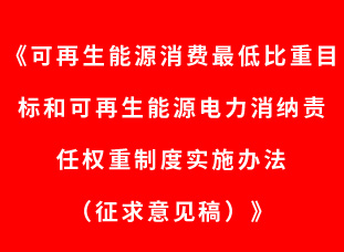 《可再生能源消費最低比重目標和可再生能源電力消納責任權重制度實施辦法(征求意見稿)》公開征求意見